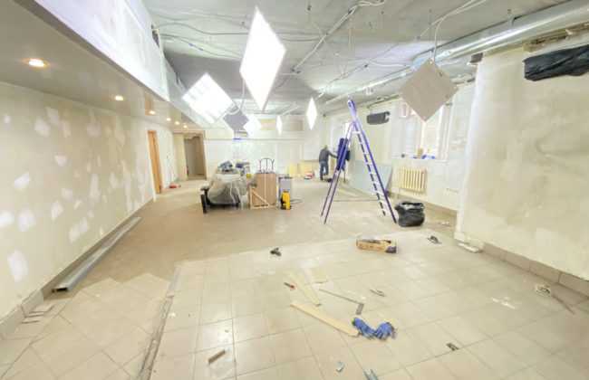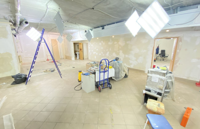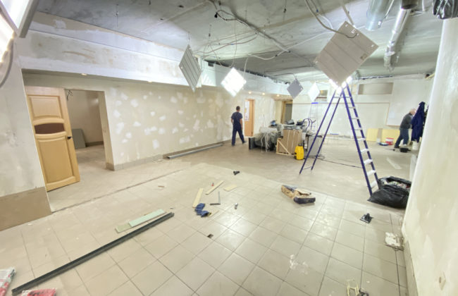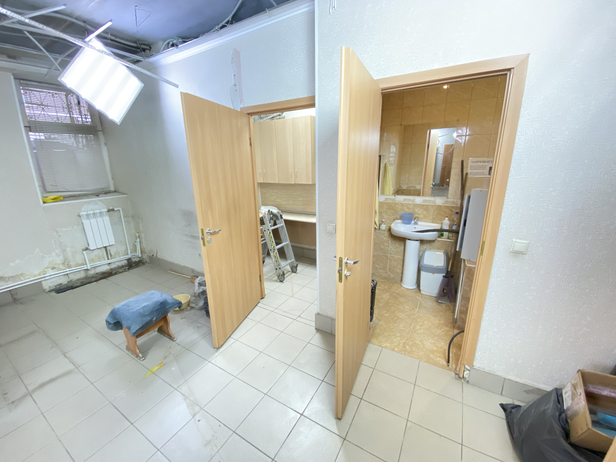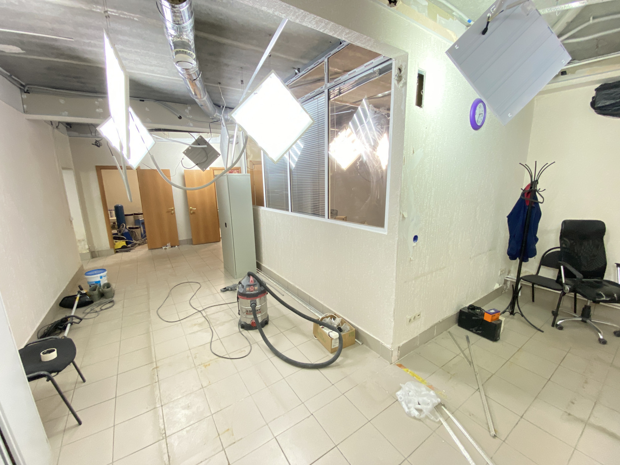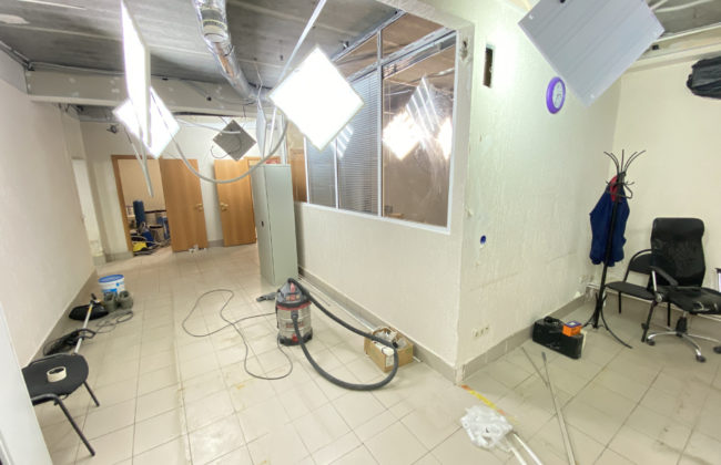 Помещение на стадии ремонта, на данный момент можно сделать по желанию арендатора. Посередине стены капитальные, остальные из гипсокартона, можно их демонтировать.