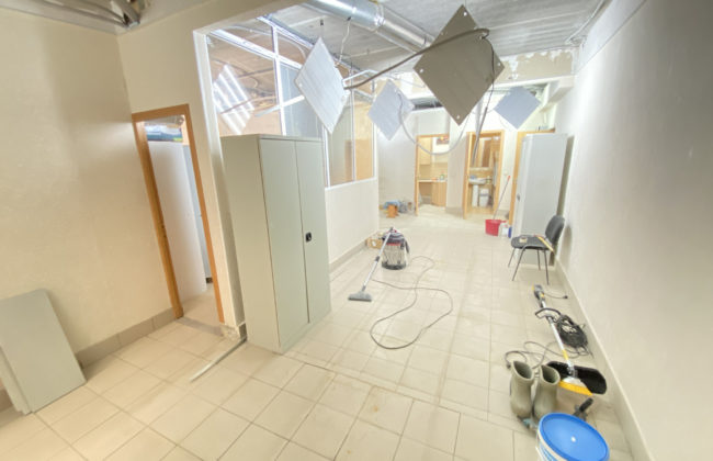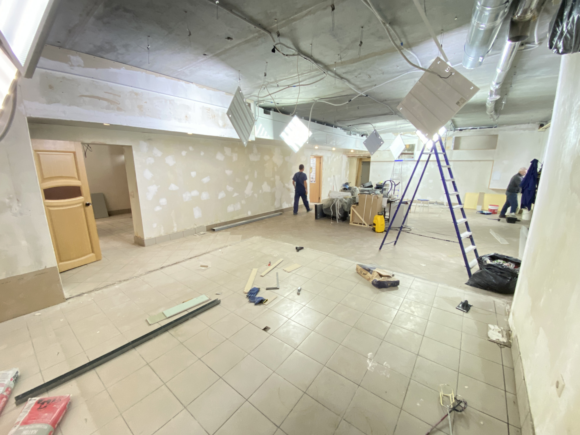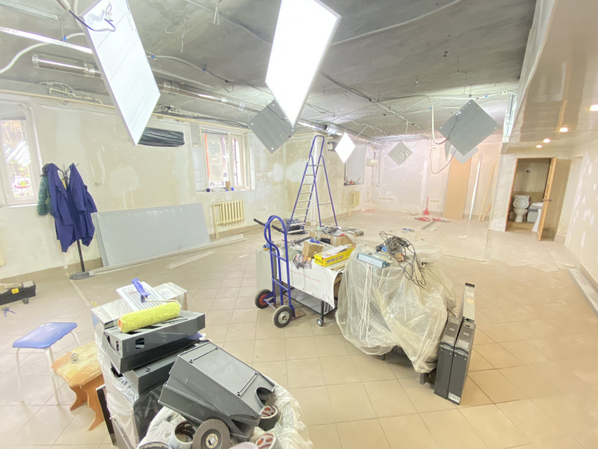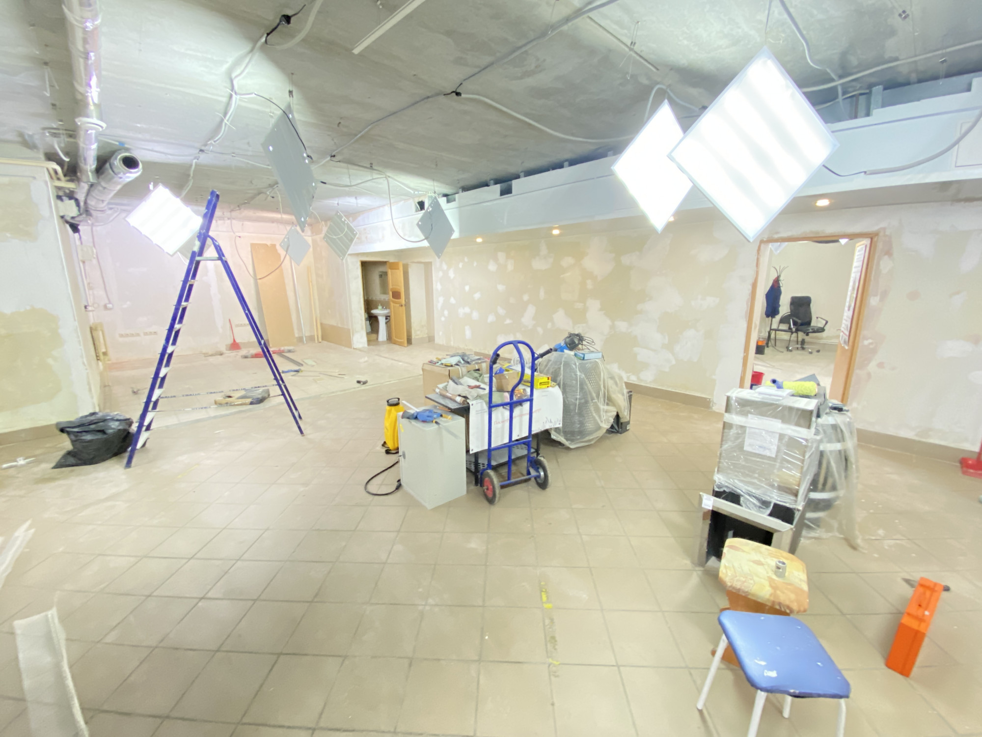 Помещение на стадии ремонта, на данный момент можно сделать по желанию арендатора. Посередине стены капитальные, остальные из гипсокартона, можно их демонтировать.