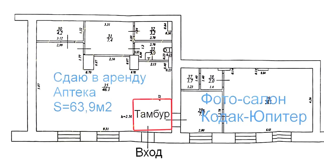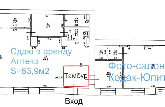 Торговая площадь на трафике, офис, 64 м²